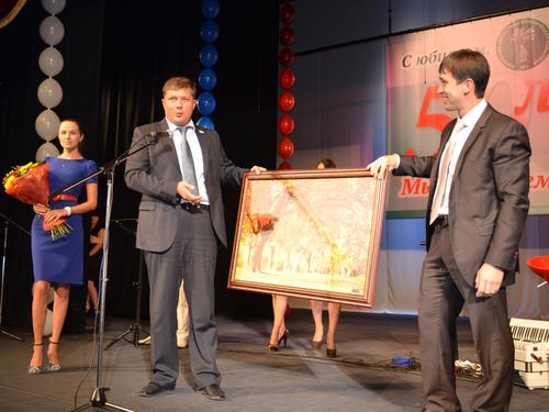 Первый заместитель Председателя Правительства Кировской области Д.А.Матвеев поздравляет главного врача КОКБ №3 Д.А.Курдюмова с Юбилеем больницы.